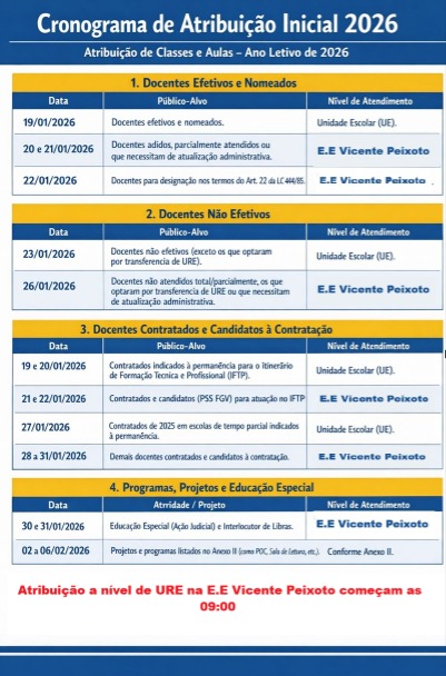 - COMUNICADO: ATRIBUIÇÃO DE AULAS DOS ITINERARIOS DA FORMAÇÃO TÉCNICA PROFISSIONAL 2026